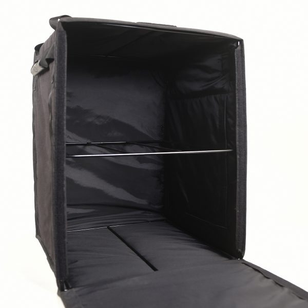 This large heated, 10 pie carrier is designed to hold ten 16-inch pizzas and comes with a high quality thermal bag constructed of premium materials for superior temperature retention, two heaters, two cords, and an internal wire rack with one shelf in the middle–5 pies on top, 5 pies on the bottom.